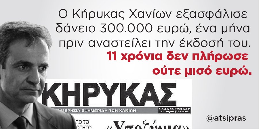 @kmitsotakis για τα δάνεια της εφημερίδας Κήρυκας Χανίων, όπως κάνουν με τους πολίτες.pic.twitter.com/IApbAZADwt