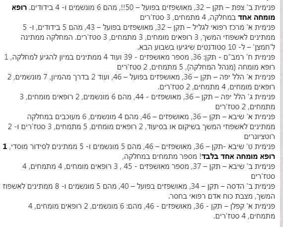 פרופ אבישי אליס, יו"ר איגוד הישראלי לרפואה פנימית: חברה שמרשה לעצמה את מה שאנחנו חווים במחלקות בחודשים האחרונים היא חברה קהה, חסרת רגישות וחמלה. אנחנו לא מצליחים להביא לכך שזה יהיה נושא מרכזי במערכת הבחירות. אבל אני מחא גאווה שהצלחנו להביא לכך שהמצב מדובר באמת לראשונה >>