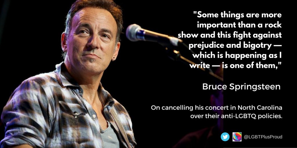 Great supportive statement from Bruce after cancelling N. Carolina concert in protest at anti-LGBT law.