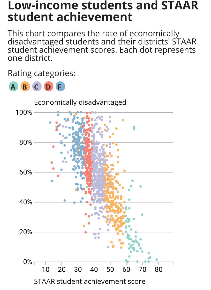 10. Another fight is the A-F grading system for Texas schools. This graph shows why some educators aren't fans.