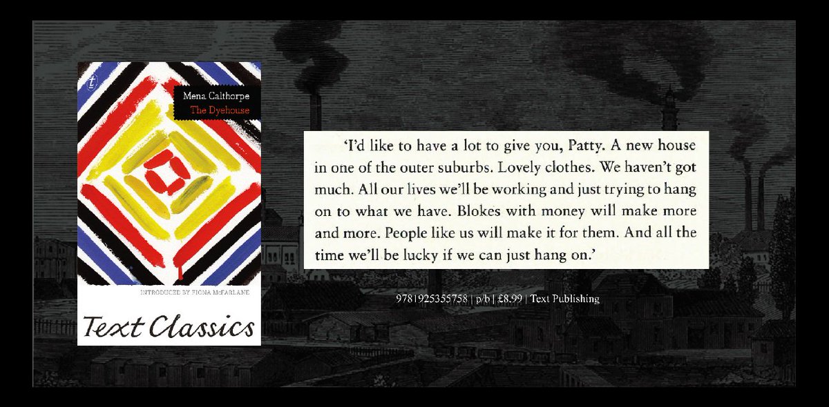 Today we're reading The Dyehouse, because it elegantly captures the grit of Australia's post-war industrial life, and you?