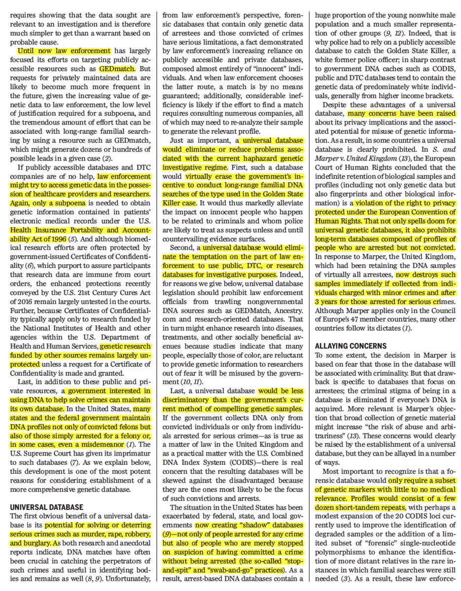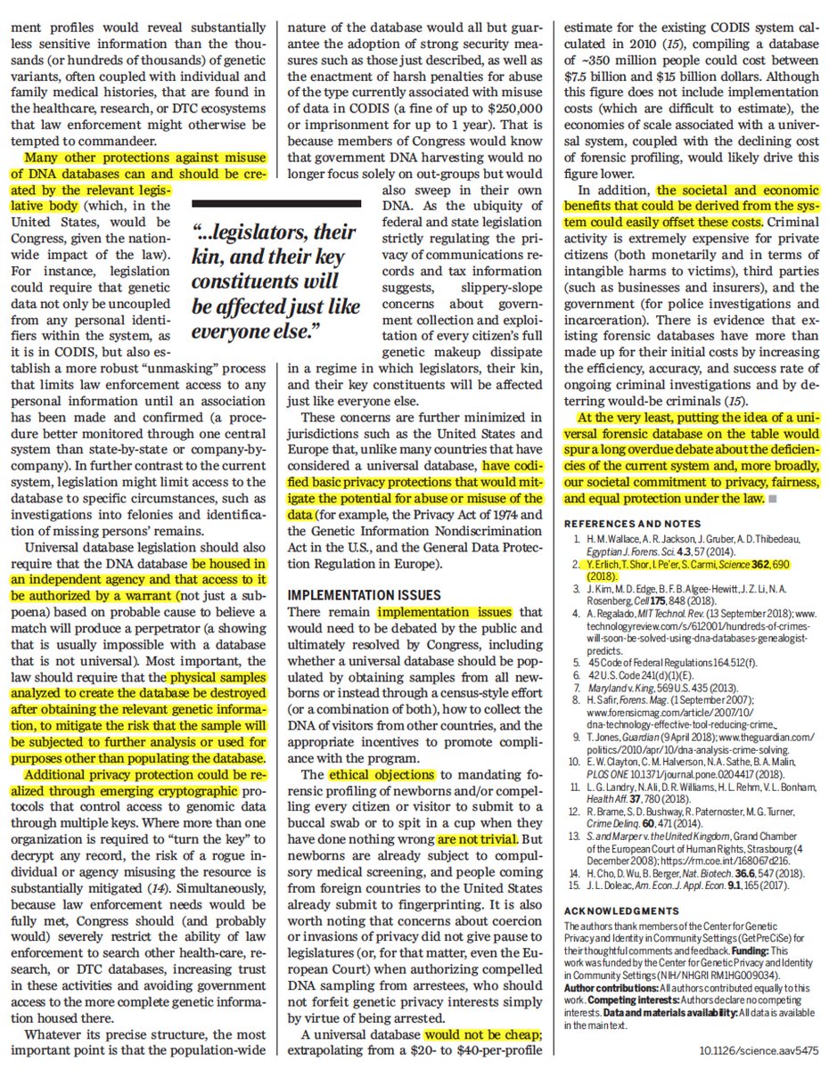 The case for a universal genetics forensic database http://science.sciencemag.org/content/362/6417/898.summary … by