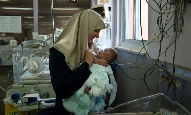 Palestinian mother holds her baby for the 1st after giving birth 6 mo ago. Israel denied her to leave Gaza to visit baby in Occupied J'slmpic.twitter.com/AH8KePfgsO