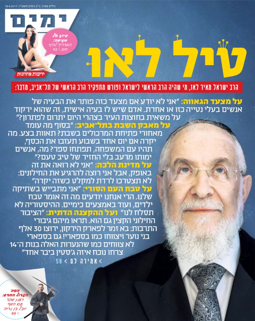 ראיון מלא סתירות מיניה וביה. למשל: שבת זה ערך חברתי אבל באותו הקשר מדבר על הפגיעה בערך דתי. לרבנים אין אינטרס אבל השחיתות חלחלה להנהגה הדתיתhttps://twitter.com/YediotAhronot/status/875670318525894656 …