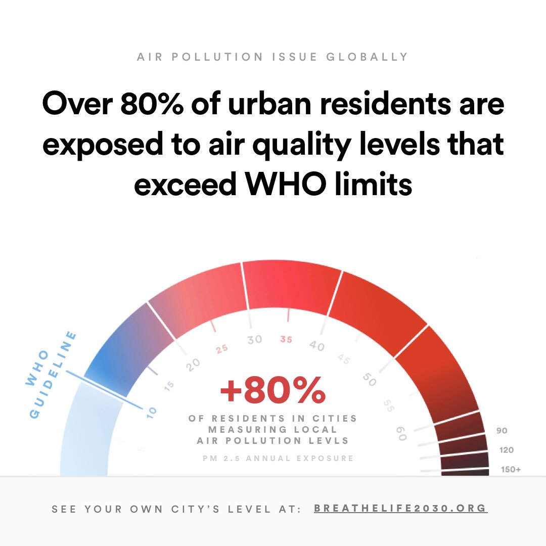13. Over 80% of urban residents are exposed to air quality level that exceeds WHO limits