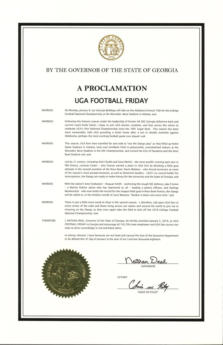 #UGA Football Friday,” & I encourage fans far and wide to represent@FootballUGA tomorrow by wearing red and black.#keepchoppingwood#ATDpic.twitter.com/2zDfayeCb6
