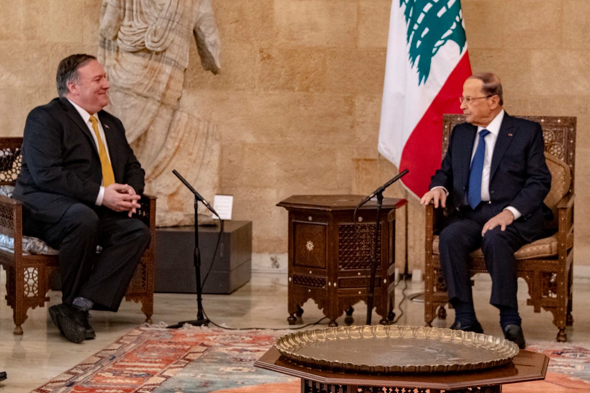 Discussed strong U.S.-Lebanese ties and a wide range of topics with President Aoun today, including economic, security, and regional policies.pic.twitter.com/MCr3QZPhIm