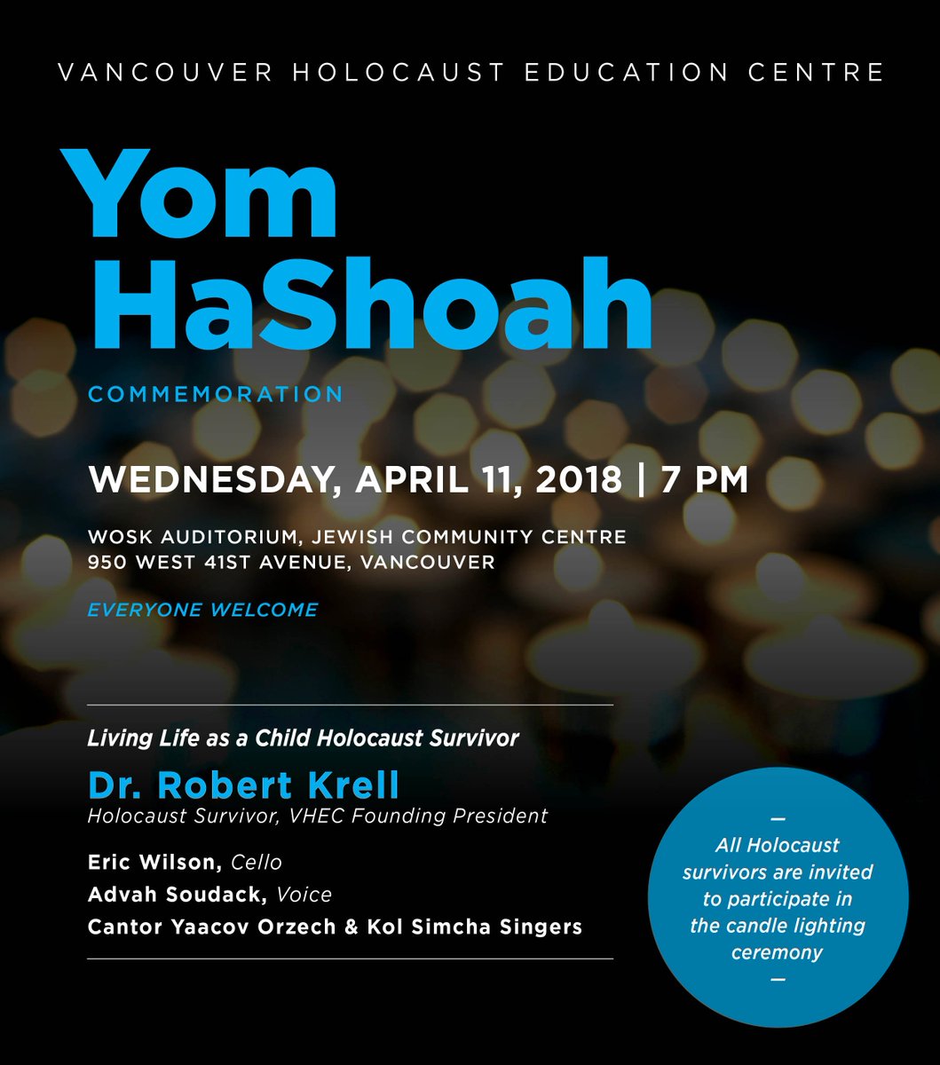 Please join the VHEC tonight at 7pm in the JCC’s Wosk Auditorium as we commemorate Yom HaShoah. Holocaust survivors are invited to participate in the candle lighting ceremony.