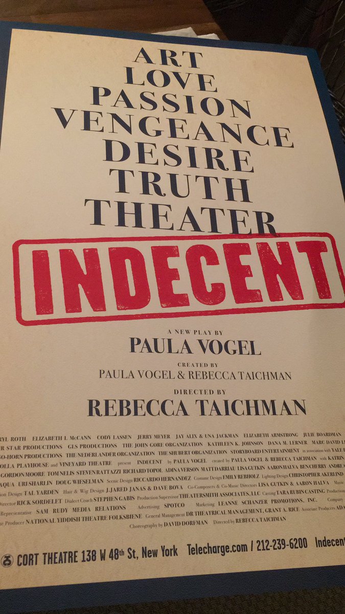 Go see INDECENT - on Broadway through August 5th! Really amazing work - beautiful, thought provoking, funny and I cried several times!