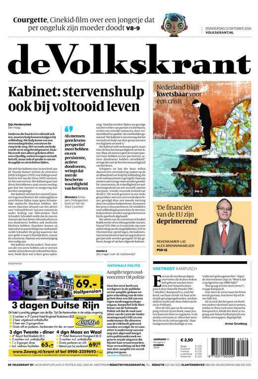 De voorpagina van de krant van donderdag. Hier leest u vast zes artikelen: http://www.volkskrant.nl/media/het-nieuws-van-vandaag-en-de-krant-van-morgen~a4394392/ …pic.twitter.com/XmDP4ly6Z9