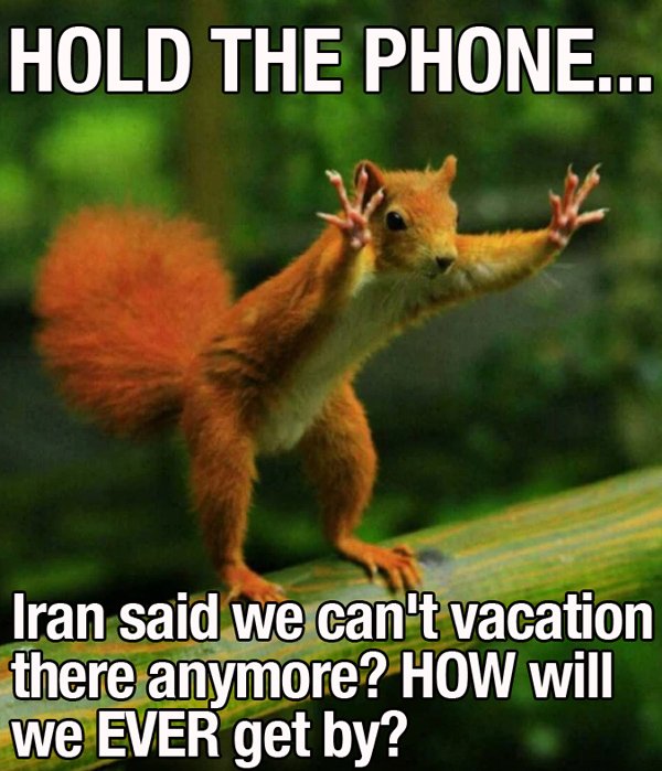 #Iran said we can't vacation in their 16th century hell hole any more.pic.twitter.com/pQw071DmGH