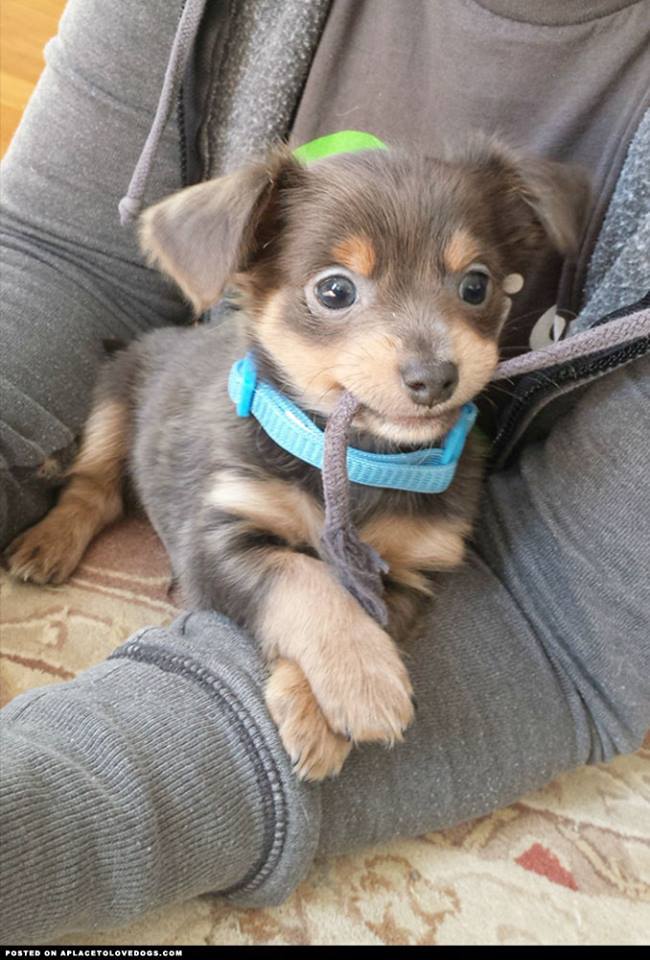 Today's Adorable Puppy is Charlie, a 3-lb cutie-pie, Chihuahua-Dachshund mix.