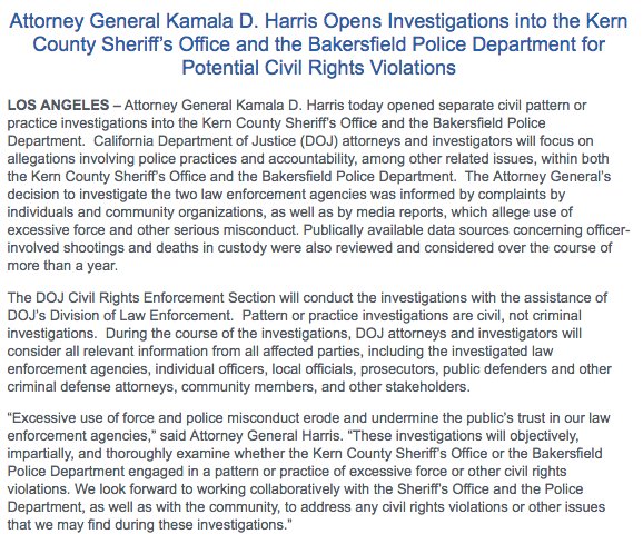 @KamalaHarris opens investigation of deadly police departments investigated by@jonswaine and@oliverlaughland https://www.theguardian.com/us-news/2015/dec/01/the-county-kern-county-deadliest-police-killings …pic.twitter.com/Nzs5VwZWu0