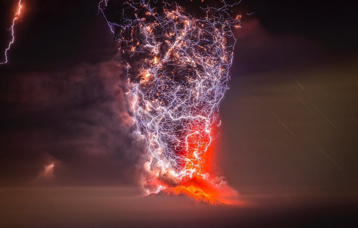 9. Pluma volcánica que emite relámpagos de cargas estáticas creadas dentro de la ceniza.