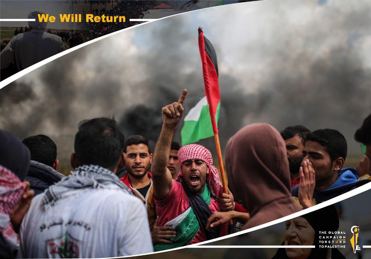 “The Great Return March is 70 years in the making / The youth are rising up for national liberation!”