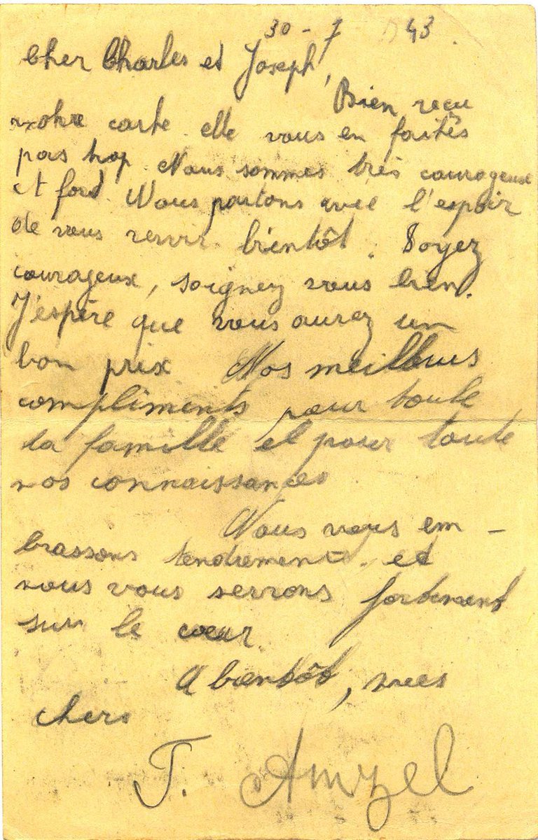 Découvrez la lettre envoyée par Tauba Amzel à ses fils le 30/7/43 du camp de Malines (Belgique) avant sa déportation http://ow.ly/SCOu30duOJp pic.twitter.com/z9fOlLx6V3