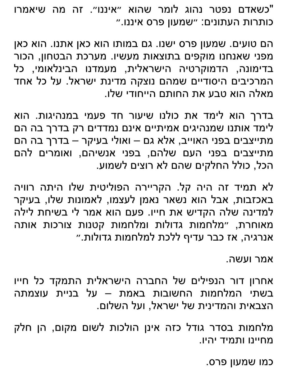 גם במותו פרס אתנו, הוא כאן מפני שאנחנו מוקפים בתוצאות מעשיו.pic.twitter.com/8kG7WoFxJg