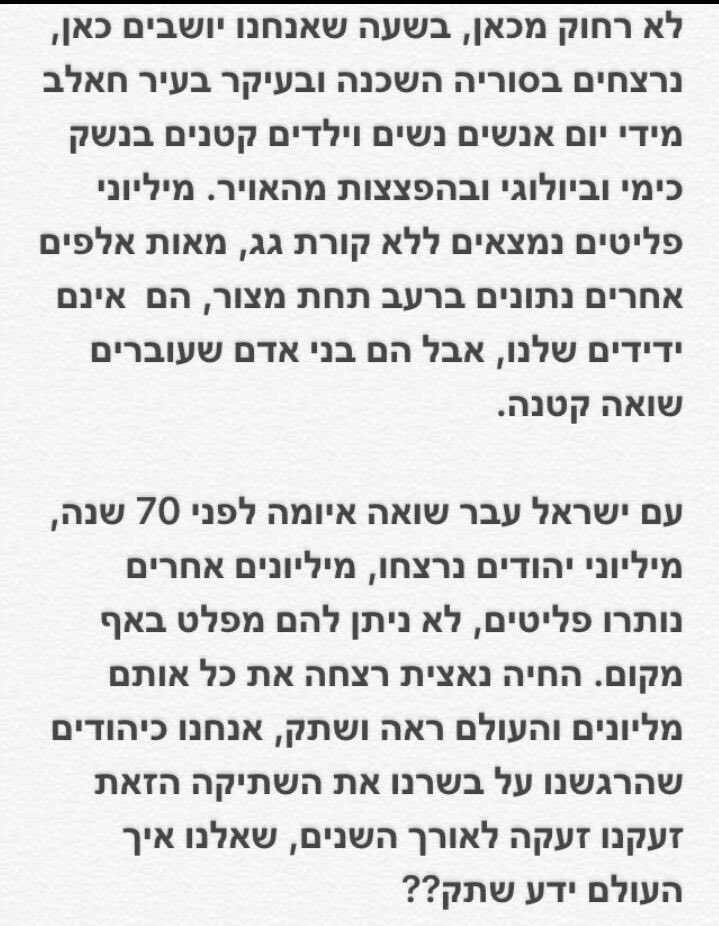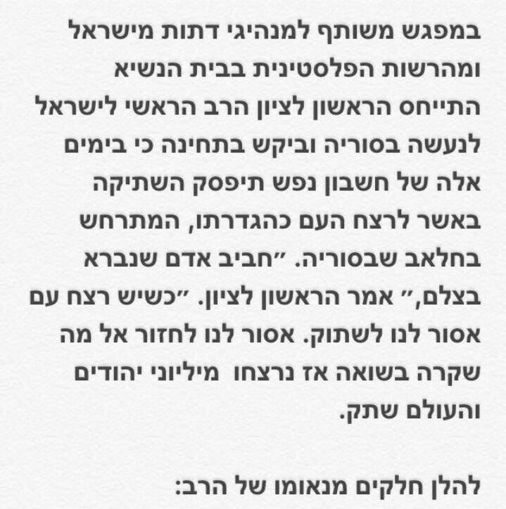היו לי ויש לי חילוקי דעות עם הראשון לציון, אבל הדברים שאמר היום על המתרחש בסוריה הם דבריו של מנהיג רוחני אמיתי.pic.twitter.com/2flesYWRHz
