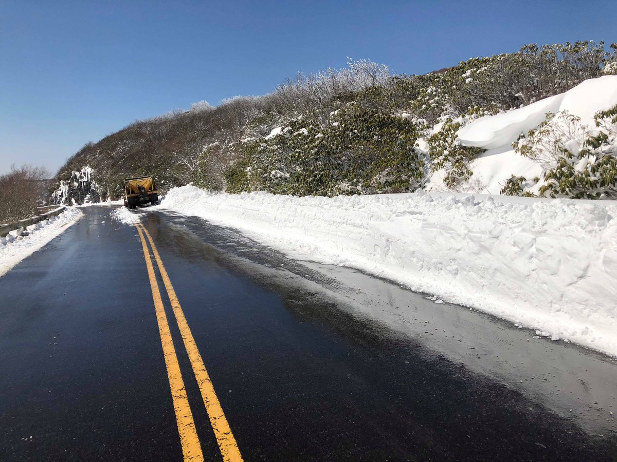 Parkway road crews are out at Craggy Gardens area trying to get the roads cleared before the weekend! They are hopeful that this area may be accessible for the warm weekend ahead. Be sure to check the real time road map for up to date info http://ow.ly/IQ9R30iYhCO pic.twitter.com/9hOKt4GugV