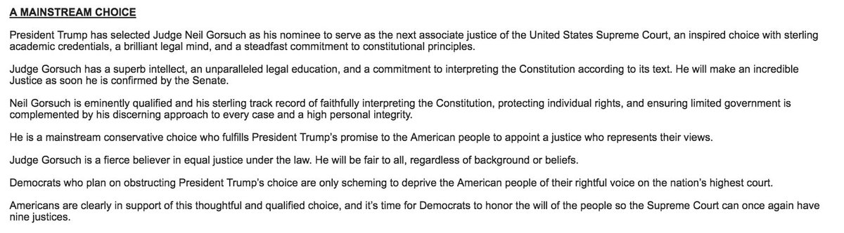 RNC talking points on Gorsuch: "A Mainstream Choice"pic.twitter.com/iFZDMGS7Yb