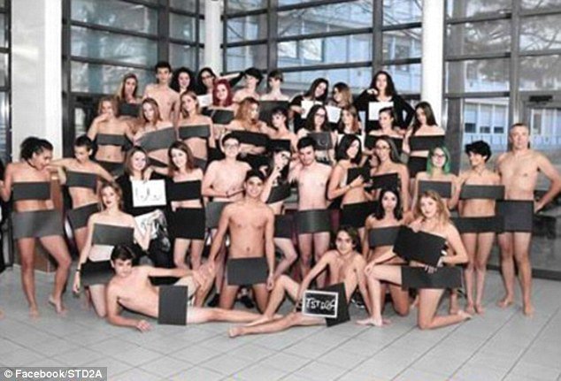 French high school pupils strip off for a very cheeky end-of year-school photo http://dailym.ai/2ikdDaQ pic.twitter.com/akFrZutgrm