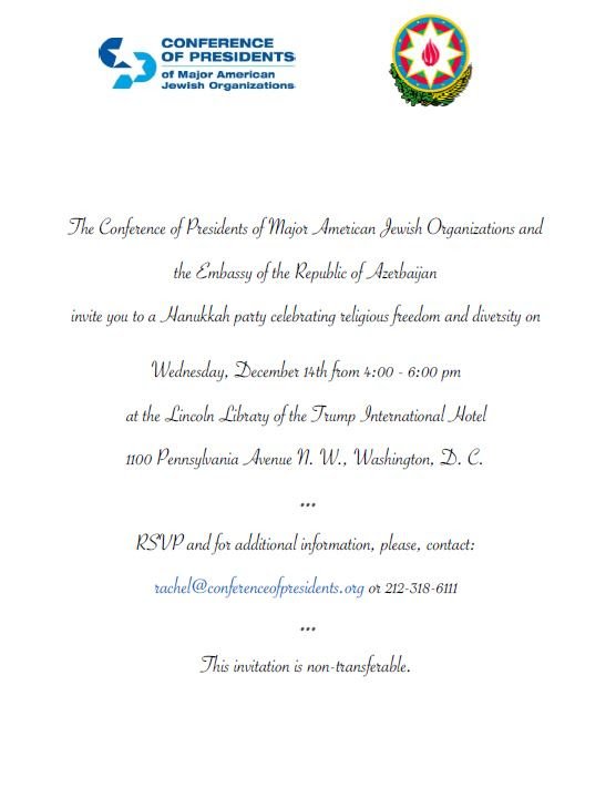 U.S. Jewish group, Azeri embassy to co-host Hanukkah party at Trump's hotel