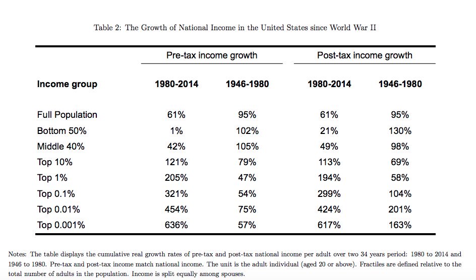 10. Growth of average income in the US since 1980: +61%. Growth for the bottom 50%: +1% Growth for the top 0.001%: +636%. 🤔🤔🤔