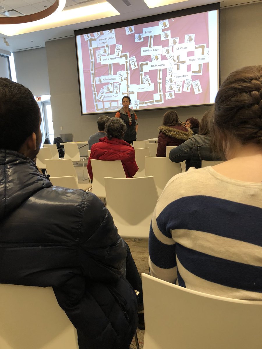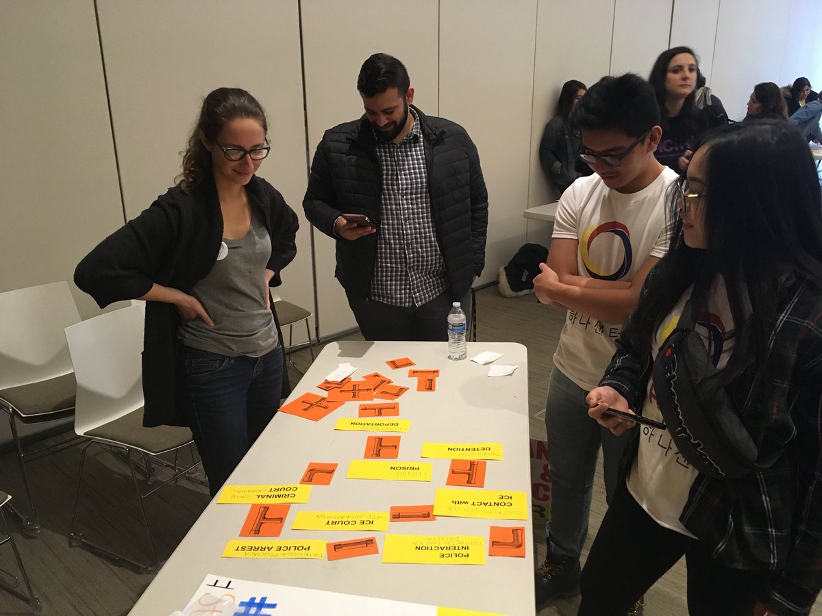 In breakout groups at , the group focusing on expanding sanctuary on a city level took some time to visually represent the pipeline of police interaction, ICE, and deportation