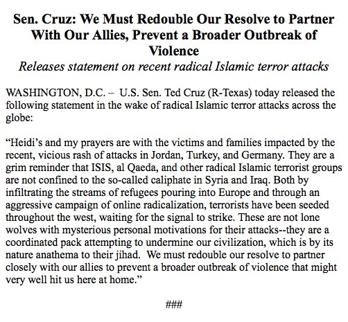 These are not lone wolves. They are a coordinated pack attempting to undermine our civilization.https://twitter.com/SenTedCruz/status/811302434442199043 …