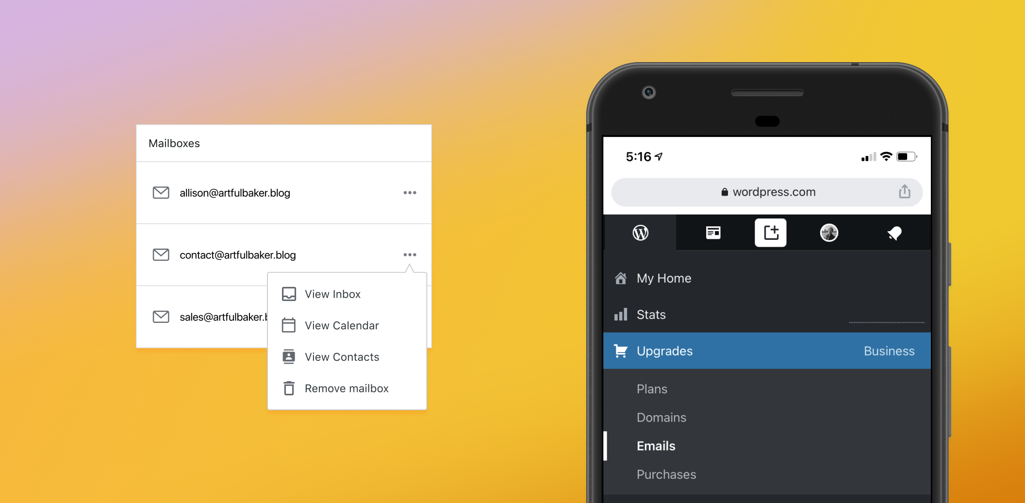 Professional Email is an email platform built by Titan, a strategic partner of Automattic (the creators of WordPress.com). With a custom email address and feature-rich web and mobile apps, Professional Email enables you to work smarter and more efficiently over email.