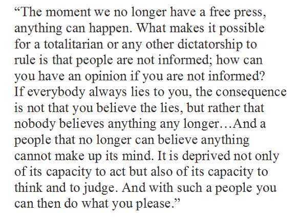 Hannah Arendt on totalitarianism and the danger of lies. 1978 interview via