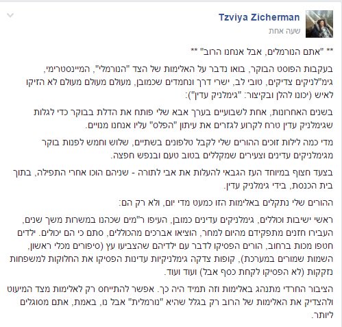 אז מי פה האלים? כתבה עו"ד צביה זיכרמן, בתו של הרב דוד זיכרמן המזוהה עם "הפלג הירושלמי"pic.twitter.com/UtGBB7cqdJ