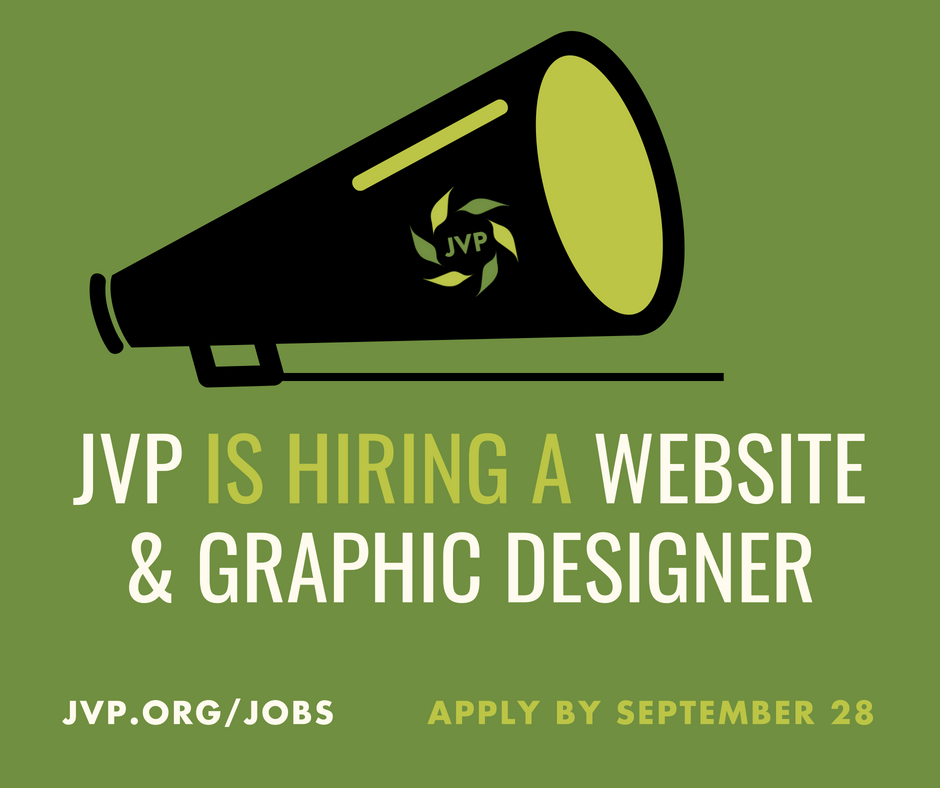 Greetings - we are looking for a Website and Graphic Designer at Jewish Voice for Peace! Come work with us! See