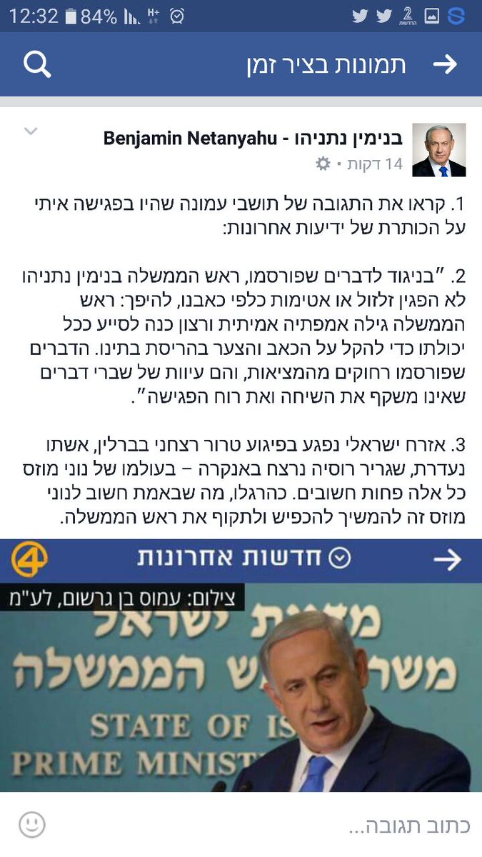 זה נורא איך שידיעות הכפישו את נתניהו ואני מבין מה עובר עליו. גם לי היה פעם ראש ממשלה שהסית נגד ערבים, שמאלנים וכל מי שלא בא לו טוב בעין.