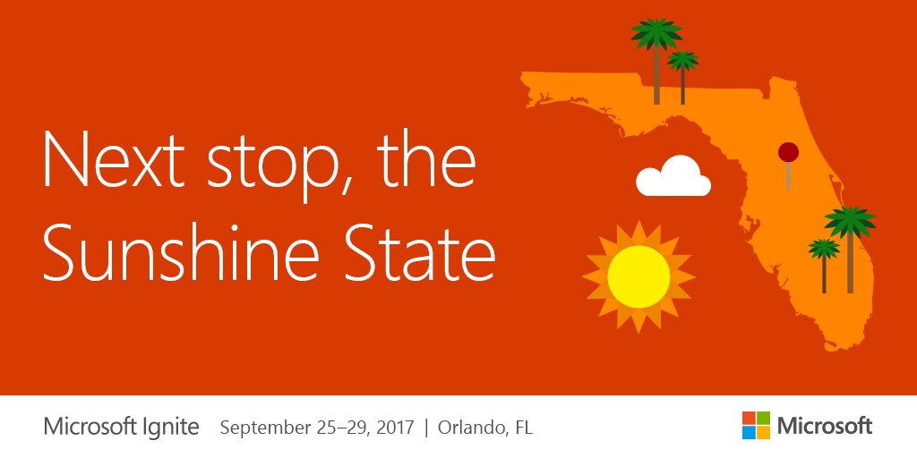 #MSIgnite 2017 in Orlando. Pre-register today. http://msft.it/60108zZDi pic.twitter.com/xwbT0aviks
