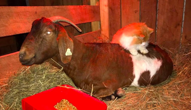 Cat named Pretty Boy is a caring midwife for a lucky, pregnant goat http://on.mash.to/2icECoe pic.twitter.com/H8IIXJR4sj