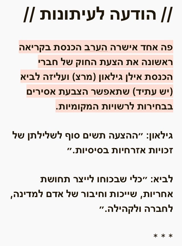 @aliza_lavie ושלי להצבעת אסירים בבחירות לרשויות המקומיות. יאללה לקריאה שנייה-שלישית ויש לנו חוק!pic.twitter.com/pPoQuVHvN4
