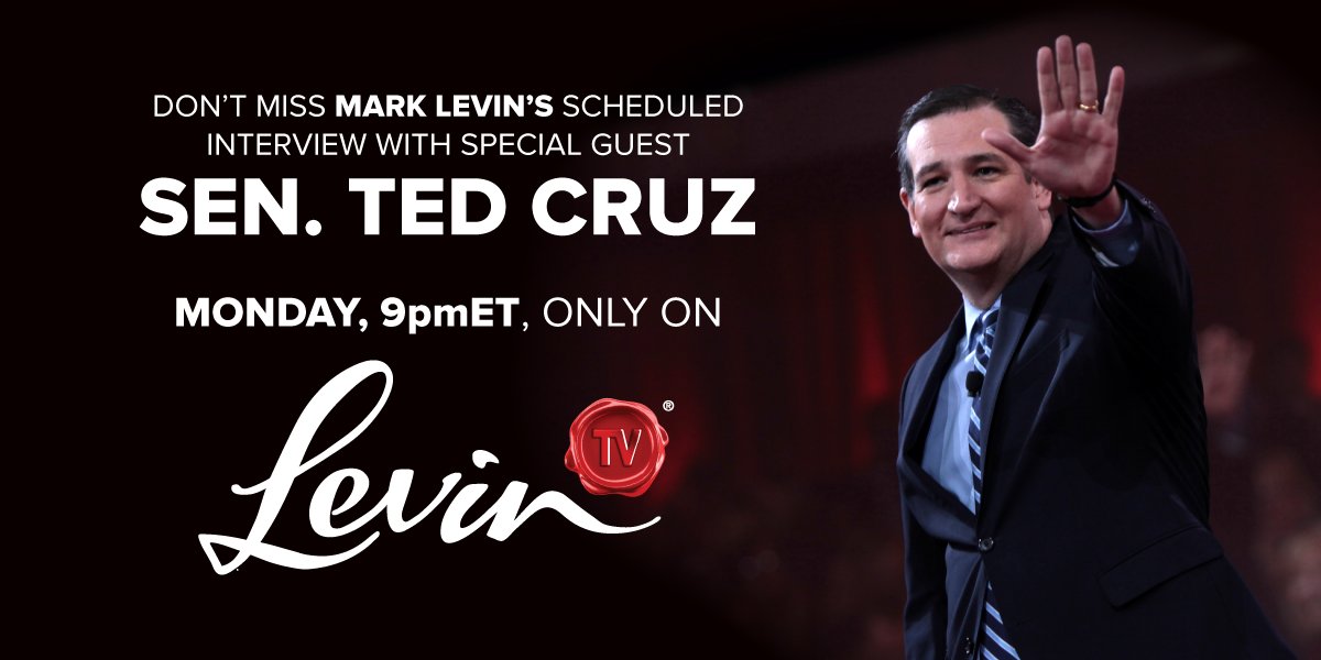 @marklevinshow's interview w/@tedcruz at 9pmET, on@LevinTV. Start a CRTV 7-day FREE trial now: http://bit.ly/2jV5ZrU pic.twitter.com/RFrDQHNooH