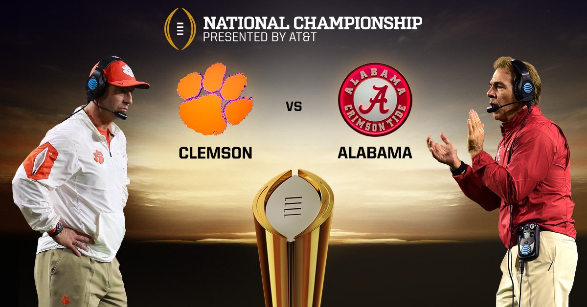 #NationalChampionship game presented by@ATT on@ESPN tonightpic.twitter.com/KqxOz44ryk