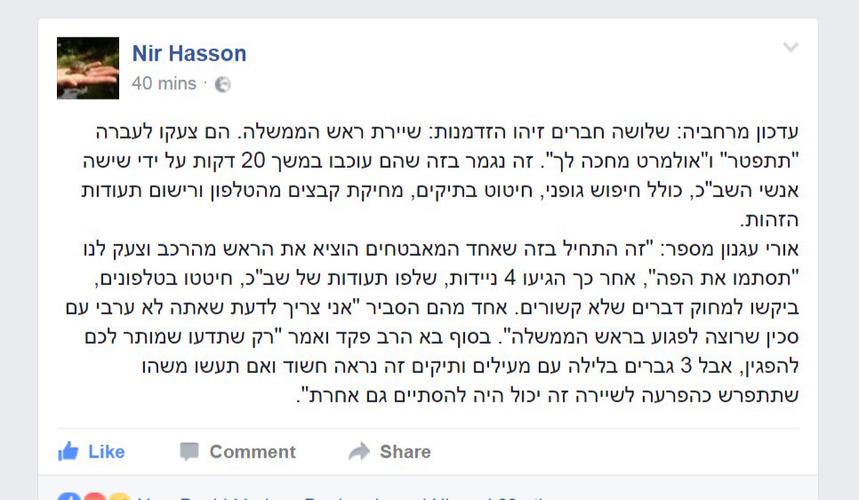 אם אני נרצח בפיגוע, אנא עשו הכל שאף פח זבל שקשור לממשלת העבריינים והערסים הזו יגיע להלוויה. שימשיכו לעשות חפלות בכנסת עם דגים ו-וויסקי.