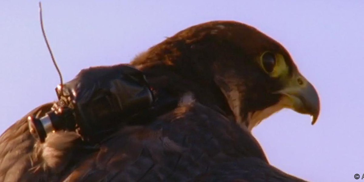 A peregrin falcon soars between trees at record speeds