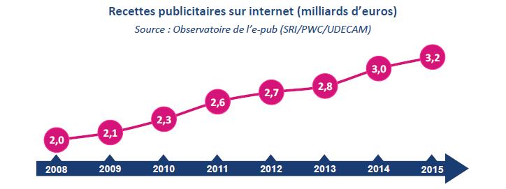 Recettes publicitaires sur internet : 3,2 milliards d'euros en 2015 (dont 309 millions uniquement sur la pub vidéo)pic.twitter.com/SCSQUW3S78
