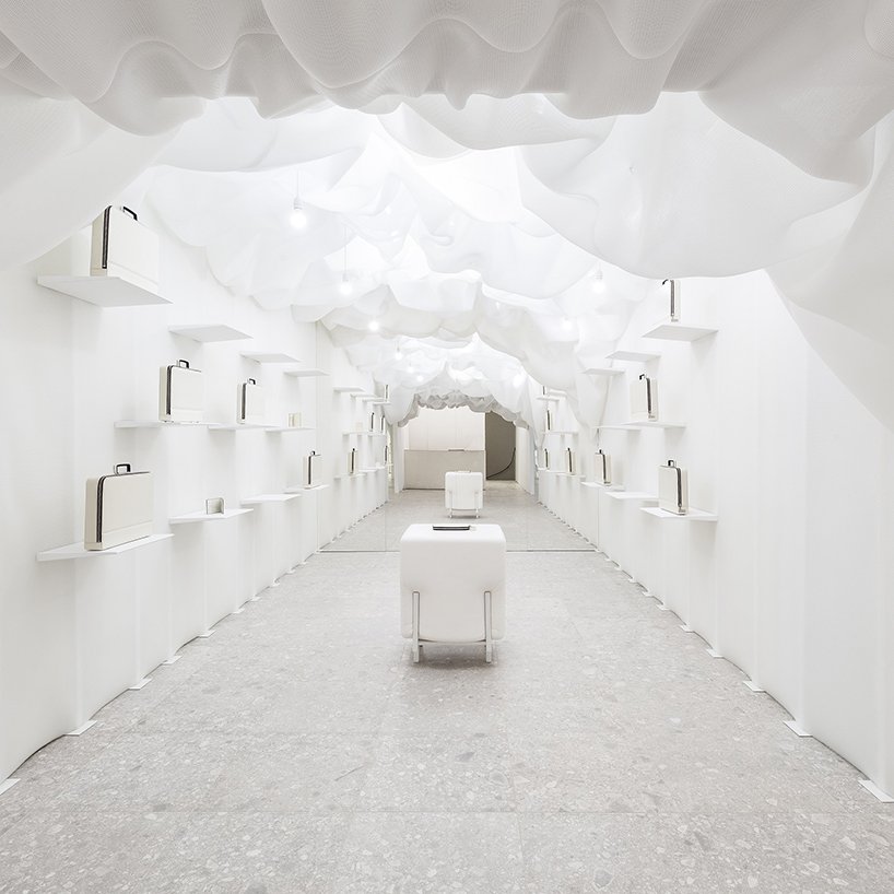 snarkitecture creates ethereal all-white pop-up inside