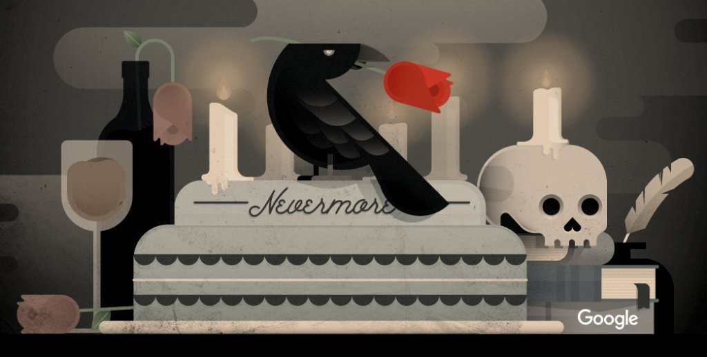 Today we celebrate Edgar Allan Poe with a raven and roses. Help yourself to cake before it's nevermore. → https://goo.gl/MHYL8y pic.twitter.com/FzY3h4kBby