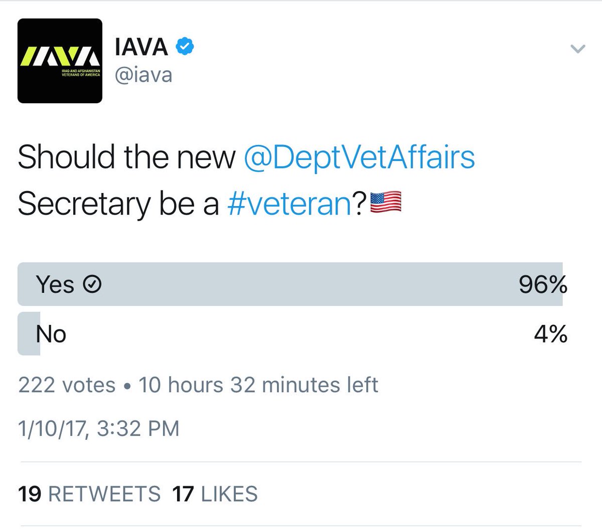 8. If Trump does pick Dr Shulkin to lead VA, this will likely be his biggest issue to overcome. He'd be the first non-vet VA Sec in history.