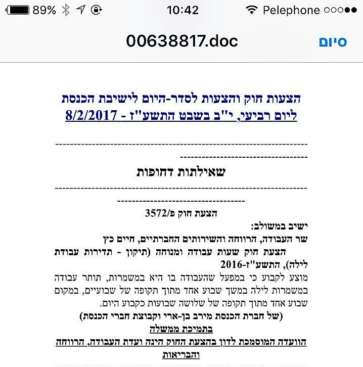הצ"ח שלי בנושא עבודת לילה, עברה היום. לפי התיקון תהיה אפשרות רחבה לעובדים לבחור לעבוד בלילה,תודה איילת הנהדרת על הסיוע והתמיכה