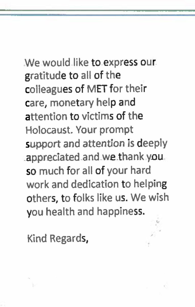 What a beautiful thank you card from one of our Holocaust survivor clients.