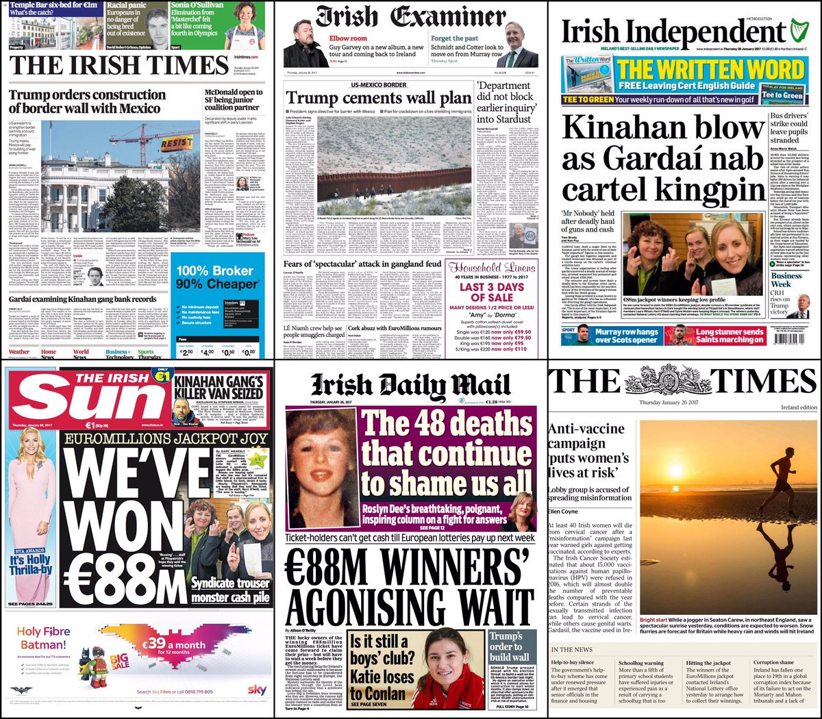 #EuroMillions winners and Donald Trump's wall the main news stories making this morning's front pages.pic.twitter.com/w8nyfvF9f5