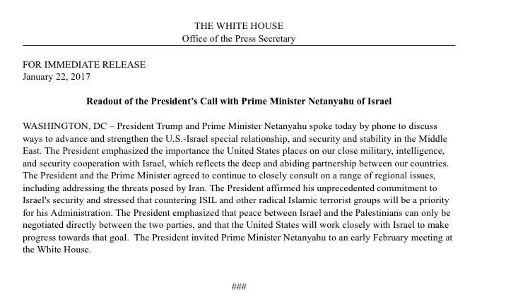 @netanyahu will talk in an hour with@POTUS.he promised in a cabinet meeting- large scale settelments building in the"blocks" -