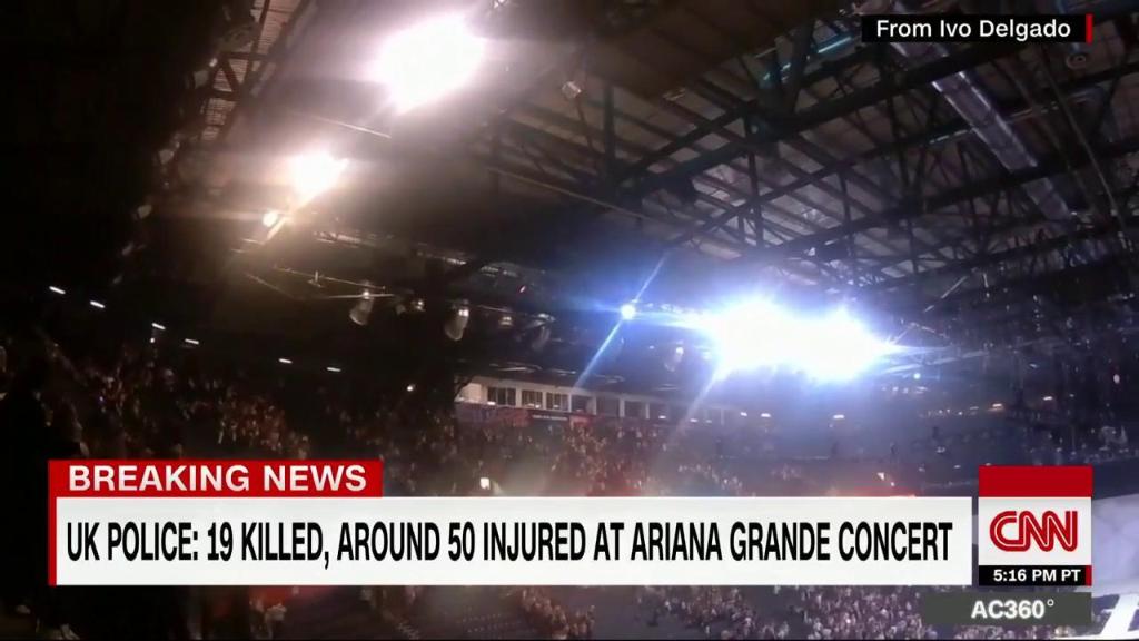 19 killed, around 50 injured after reports of explosions at Ariana Grande concert in Manchester, British police say http://cnn.it/2qe158B pic.twitter.com/6XUgFCcD62